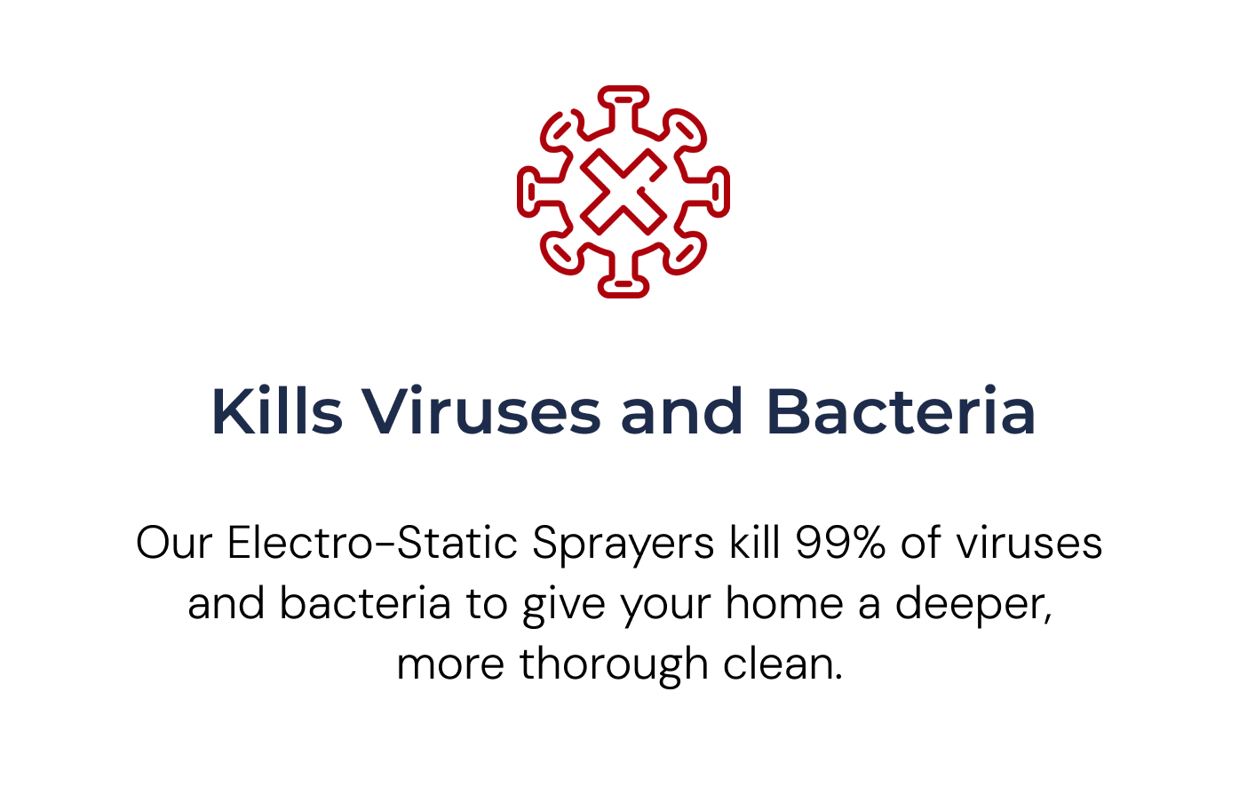 Our Electro-StaticSprayers kill 99% of viruses and bacteria to give your home a deeper, more thorough clean.